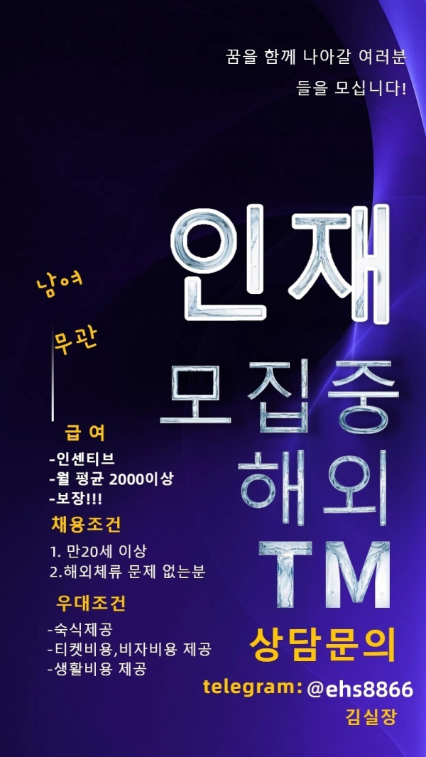 ❣️ 저희는 해외에서 TM(텔레마케팅) 업무를 함께할 성실한 인재를 모집하고 있습니다❣️