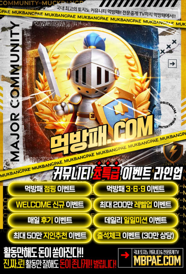 먹방패(mbpae.com)은 365일 업데이트 토토사이트 리뷰 먹방패 꽁머니 및 먹방패의 배너, 추천인, 먹방패 보증등의 기술 기반으로 사설토토를 먹방패.com에서 정하고 추천해 주셔야 합니다, 목록 활동을 제휴 사설토의 꽁포로 페이백하고 100여개의 토토 공인 제휴를 먹튀검증과 먹튀를 감시하고, 사용자들에게 꽁머니를 자동으로 사용합니다. 먹튀검증 사이트 및 전 세계 스포츠팬들이 찾는 실시간 스포츠 방송 먹튀검증 플랫폼입니다. 해외축구 실시간 시청, EPL 프리미어리그 라이브, 라리가 경기 영상, 세리에A 생중계, 분데스리가 무료 방송, 리그앙 파리생제르맹 경기, MLS 손흥민 경기, MLB 라이브 스트리밍, KBO 실시간 경기, NBA 생방송, KBL 무료 시청, UFC 라이브, 원챔피언십 방송, 롤 라이브(LCK, LPL, LEC)까지 다양한 콘텐츠를 제공합니다.