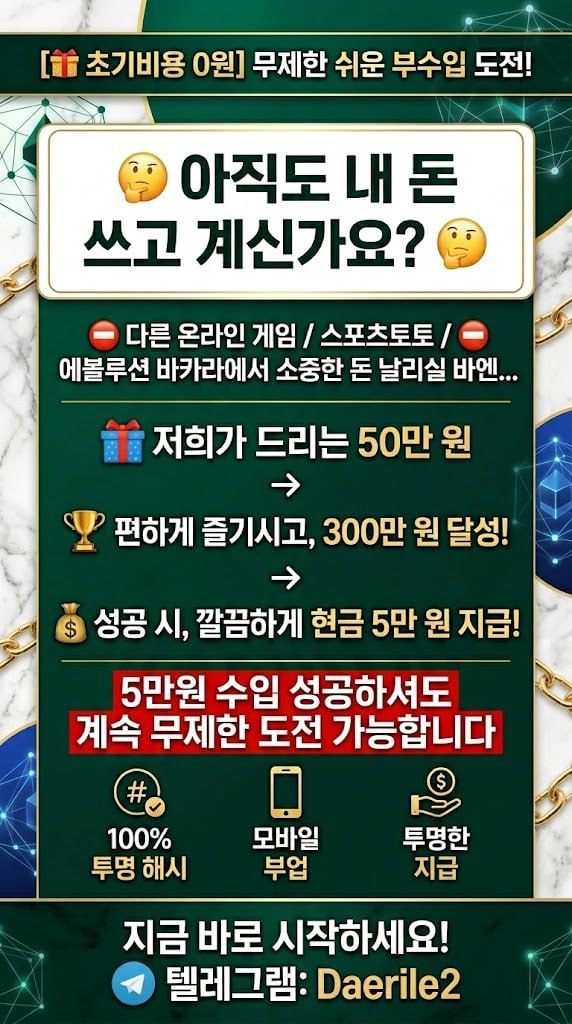 궁금하신 점이나 가입 문의는 언제든 텔레그램으로 편하게 톡 주세요! 친절하게 안내해 드리겠습니다.